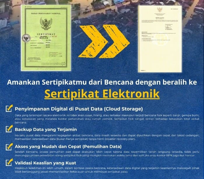 “Ini adalah langkah upgrade perlindungan aset. Sertipikat elektronik anti rusak, anti hilang, dan lebih tahan terhadap berbagai risiko,” ujar Anzar.